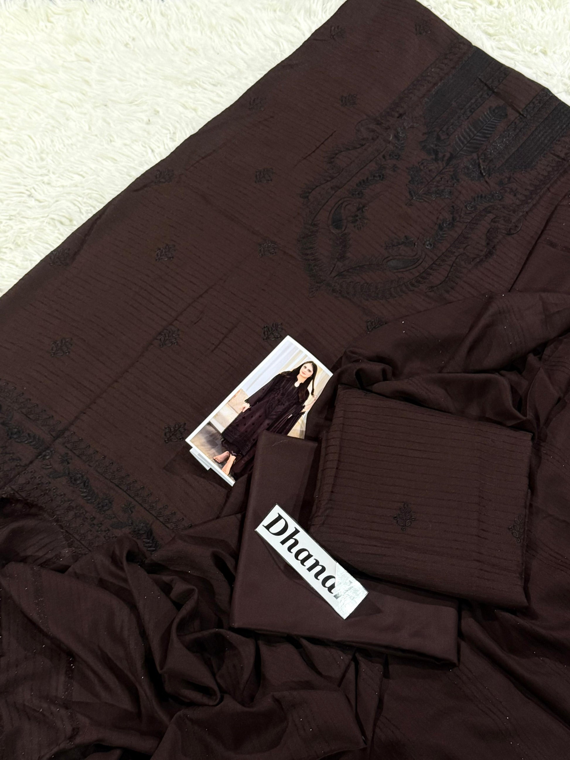 *DHANAK Banadora Velvet 3pc Heavy Embroidered With DHANAK Banadora Velvet Shawl*