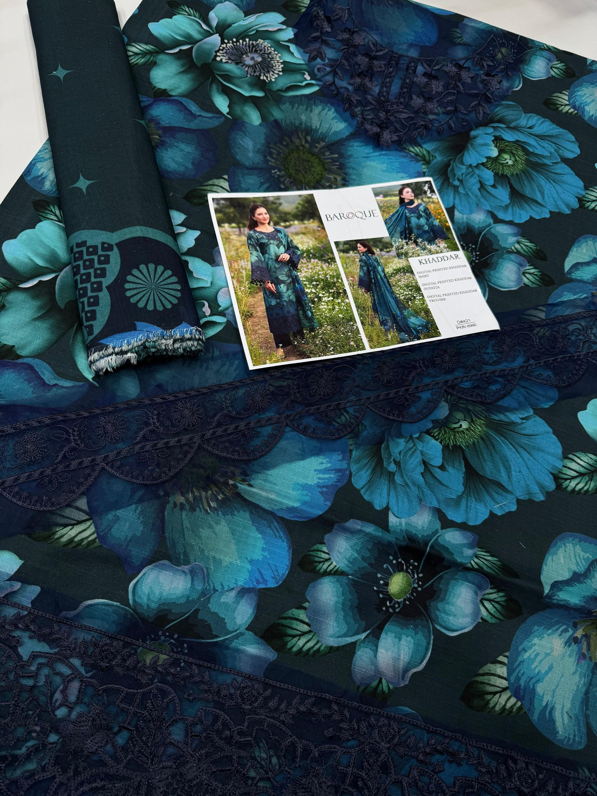 *KHADDAR Digital Print 3pc WIDER With Patches*